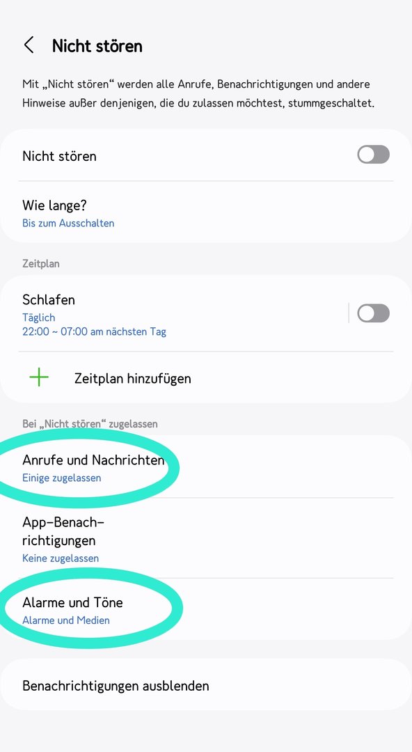 "Nicht stören" einschalten -> "Anrufe und Nachrichten" -> Anrufe alle zulassen