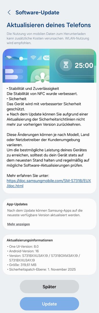 Es ist endlich soweit und das November-Update für S25FE steht zum Download bereit!