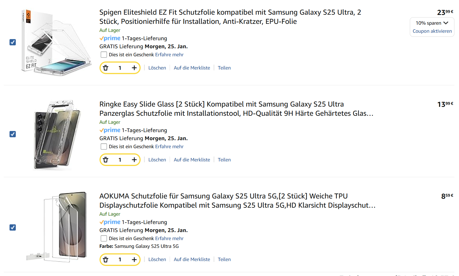 Ich teste jetzt mal die Folie von Samsung, hatte nie eine drauf aber beim 23 ultra nach 2 wochen einen dicken Kratzer drin gehabt, diesmal bin ich vorsichtiger wenn ich das Display auf die kommode lege
