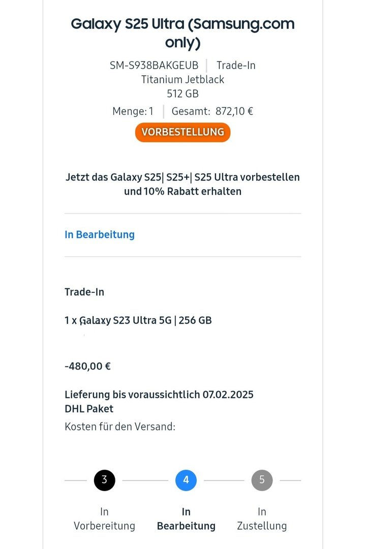 Du bist also der Grund warum es immer noch nicht verschickt wurde. Wir müssen gemeinsam druck gegen Samsung aufbauen und das geht nur mit Lieferdatum checken und Support nerven!Vjeko schrieb:Ich warte jetzt auch nur noch bis zur DHL Benachrichtigung ab und rufe seit 2 Tagen die Bestellübersicht gar nicht mehr auf