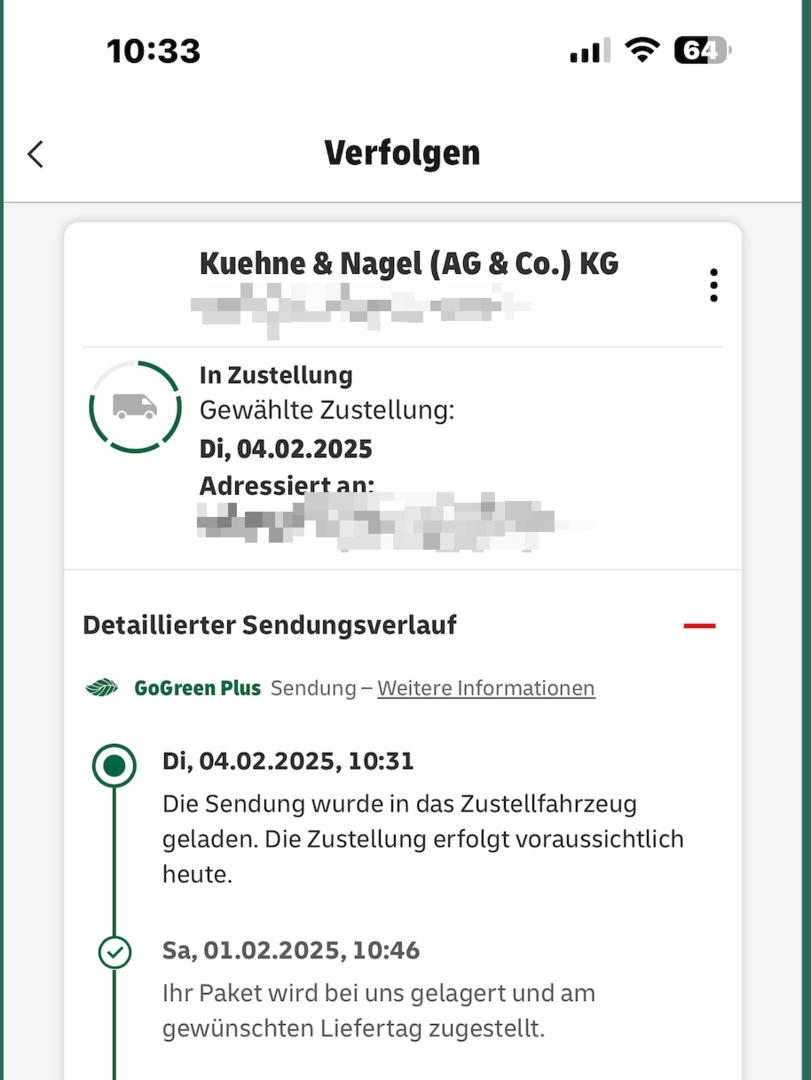 Hoffe das ist kein Böses Omen für mich, wenn ich auch in Köln warte und bei mir heute das Paket auch nicht raus gingcLokX schrieb:Zwischenmeldung: In Köln sieht es weiterhin schlecht aus. Wir haben gleich 10 Uhr und es wurde immer noch nicht ins Zustellfahrzeug geladen. Es liegt es schon den dritten Werktag in Köln. Wie habt ihr den Kundendienst kontaktiert? Chatbot beantwortet keine freien Fragen und antwortet nur mit den Inhalten aus dem Portal.