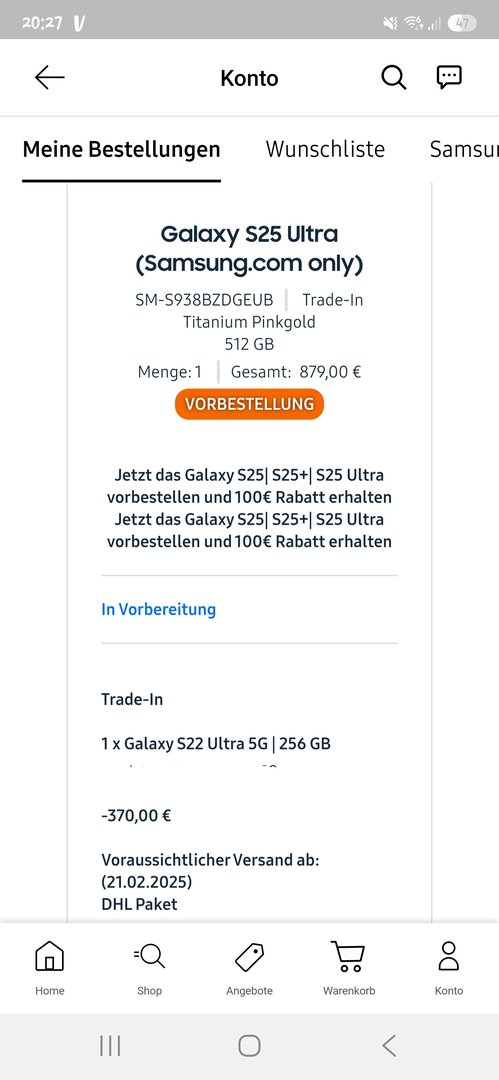 Die Geräte die man im Laden "abholen" kann, sind die vertragsfreien Geräte... Die man halt einfach so kaufen kann. Die Vertragshandys werden in deinem Fall sicherlich extra bestellt...Weil das Handy zu einem Vertrag gehört... denke ich mal so.qwyx schrieb:Ich schaue heute auf der MediaMarkt-Seite und sehe, dass das S25 Ultra 512GB in Grau bei Abholung heute schon abholbereit wäre. Daraufhin bin ich zu MediaMarkt und habe nachgefragt, ob das S25 Ultra schon verfügbar ist, da wir letzte Woche einen Vertrag für meine bessere Hälfte abgeschlossen haben. Er teilte mir mit, dass es nichts für uns dabei ist, solange keine E-Mail, SMS oder Anruf von ihnen kam.
