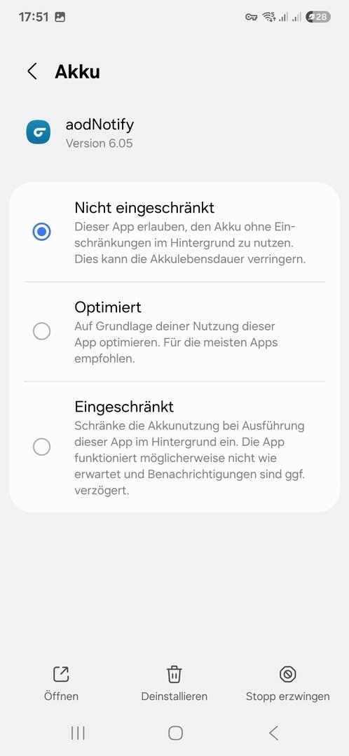 Es klingt aber eher nach einem Fehler in deinem System der sich irgendwo eingeschlichen hat oder nach einer falschen Konfig. Denn andere haben das Problem nicht. Auf jeden Fall muss die App dann vom Standby ausgenommen werden damit sie aktiv bleibt wenn man das in Verbindung mit dem Energiesparmodus nutzen will. Dafür dort in den Einstellungen bei Grenzen der Hintergrundnutzung die App in die Liste Apps nie im Standby hinzugefügen.
