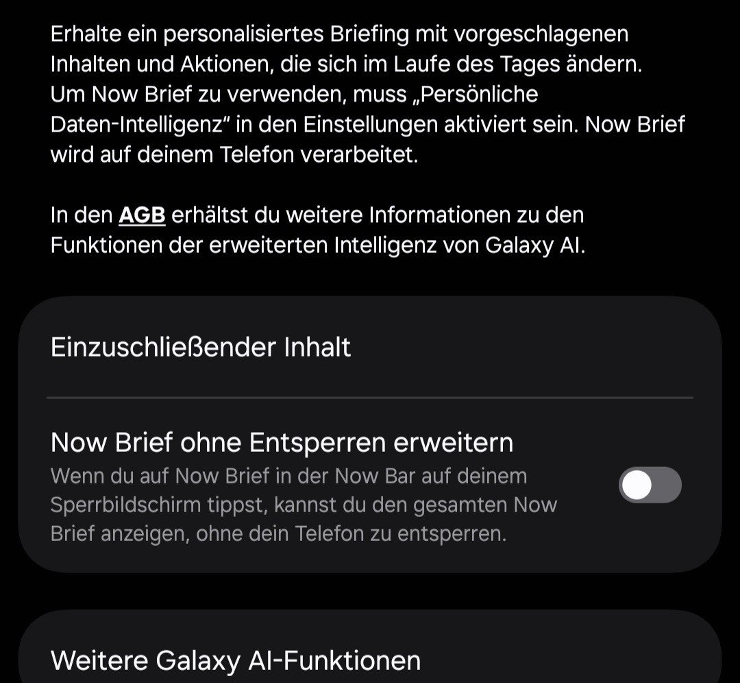 Unter den "Now Brief" Einstellungen kann ich lediglich die Inhalte dafür auswählen.