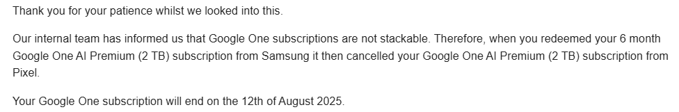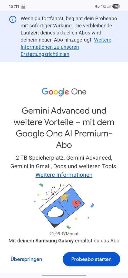 ich habe gerade etwas erschrocken feststellen müssen, dass das 12 monats Gemini Advanced Abo vom Pixel nicht mit dem des S25 kombinierbar ist.
