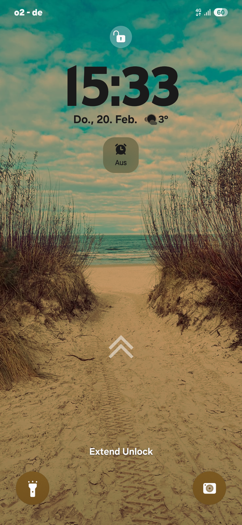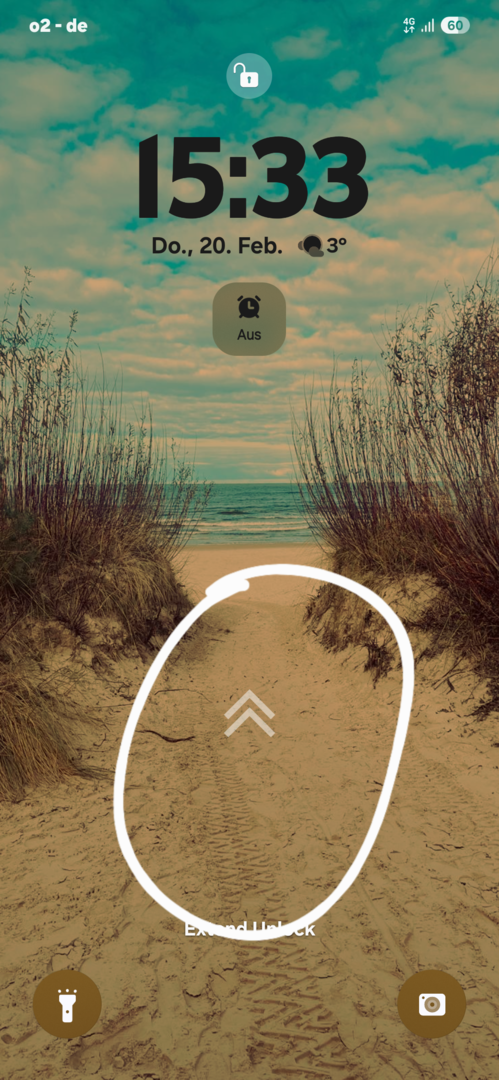 Dieser wird auf den Sperrbildschirm angezeigt wenn man an den beiden Pfeilen hochwischt.