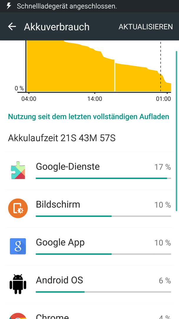 Sobald ich den Push dienst aktiviere fällt die Akkuladung rapide. Siehe Bild. Ich denke 10 Stunden ohne Filme schauen, oder Spiele ist sehr wenig.