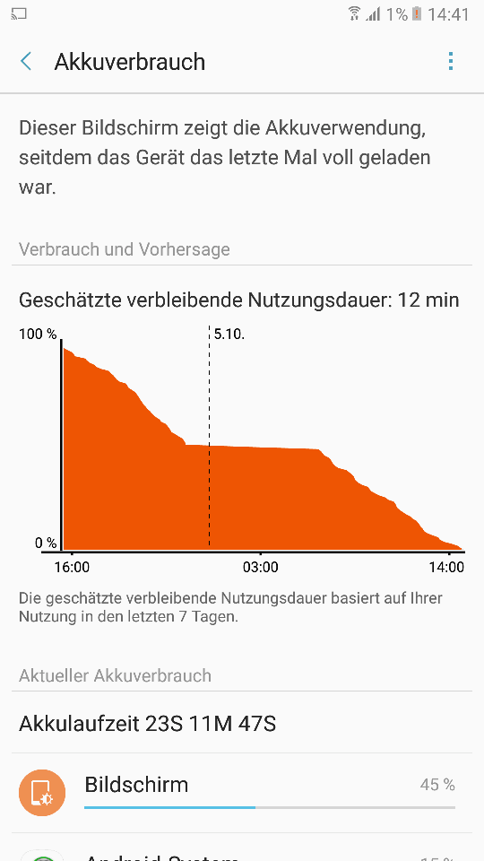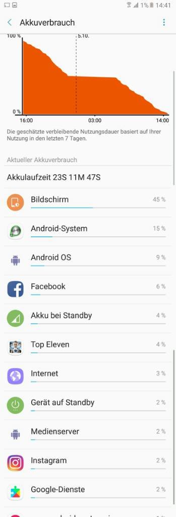 Hab heute 4,5h DoT und noch 33% bin non stop mit VPN, WiFi oder 4G und Bluetooth verbunden... Standort auf 'Nur GPS'. Alle Apps aktiviert, aber Einstellung 'Energie sparen' ohne die Hintergrunddaten einzuschränken!