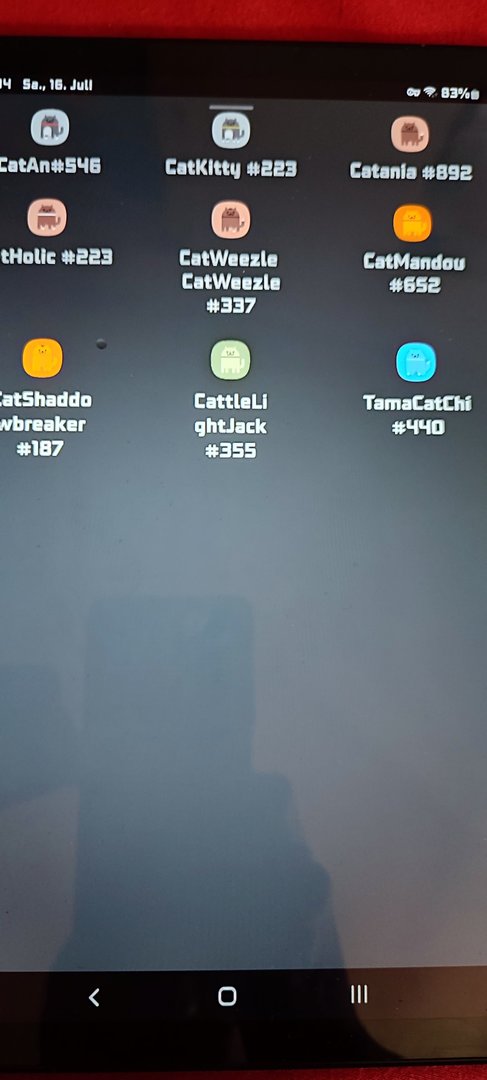... Ich gelange beim Herunterziehen des Reiters der Startseite etwas länger auf Gerätesteuerung und dahinter öffnete sich das CatControl Fenster. Darin eine orange, blaue und pinke Kachel. Füttern tränken und spielen. Jede Art Katze hat eine Nummer Cat #187. Die Katzen reagieren auf dich wenn die Kacheln aktiviert sind. Was die Nummern bedeuten entzieht sich meiner Kenntnis. Ich hab wirklich nichts installiert. Meine Bilder entsprechen original dem Tablet Menü