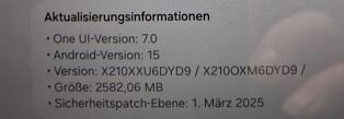 HalloBruzzelbube schrieb:Bei dem Galaxy Tab A9+ meiner Schwester wird leider kein Android 15 jetzt im Juni angeboten. Es wird lediglich ein Sicherheitspatch mit Stand 1. Februar angezeigt der aber schon installiert ist. Muss man das jetzt verstehen?