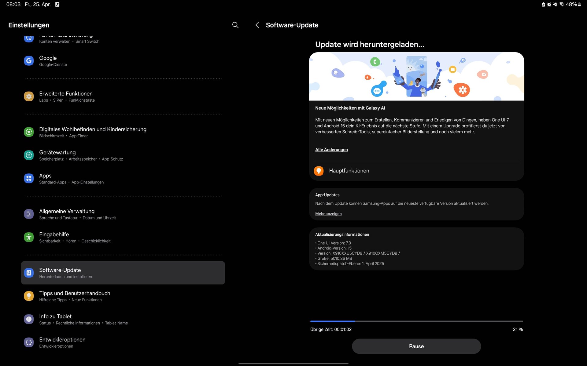 Ich habe aktuell noch ein S25U mit OneUI 7 und würde gerne einige Funktionen die den Akku betreffen am Tab S9 Ultra aktivieren. Wie den Leichtmodus oder den Energiesparmodus ohne Begrenzung der Bildwiederholrate, was erst ab OneUI 7 möglich ist.