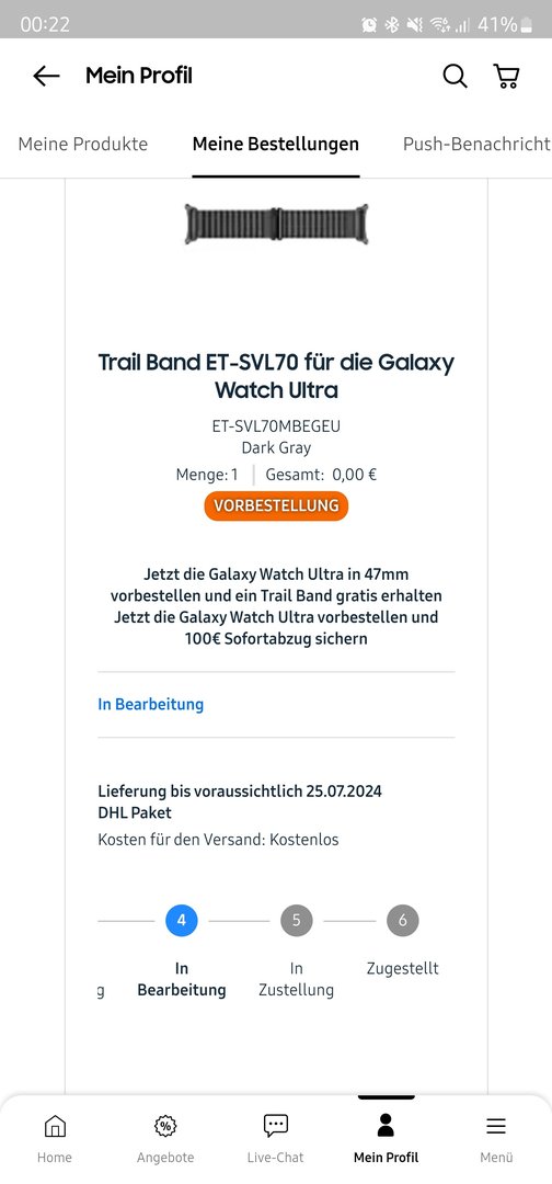 Nun steht auch das Lieferdatum für die Uhr auf Lieferung bis voraussichtlich 25.07.2024.Master7x schrieb:Meine Uhr (Silber, bestellt 12.07.) ist heute nun auf "in Bearbeitung" gesprungen. Das kostenlose Band steht noch auf "in Vorbereitung". Liefertermin für beides noch 31.07.