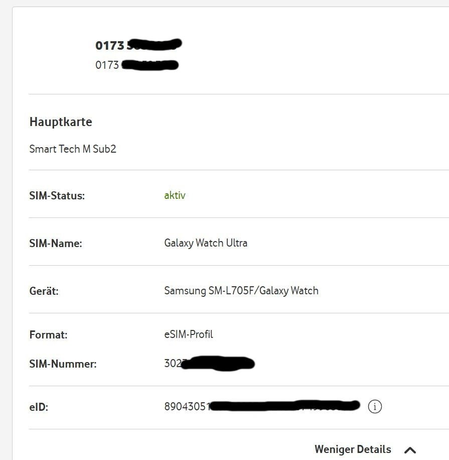 Wenn ich das mache, komme ich auf eine Vodafone-Seite, wo ich kostenpflichtig eine One-Number-Option buchen soll (gleiche Nummer Smartphone/Watch). Das brauche ich eigentlich nicht.