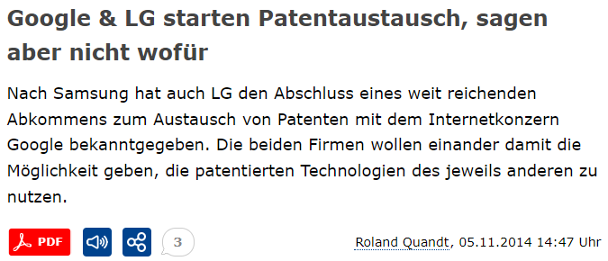Natürlich nicht, üblicherweise werden einfach Deals mit Patenten gemacht. Ich nutze eine Technologie von dir dafür darfst du eine von mir nutzen. Ist eine ganz normale Praxis der großen Konzerne.DerStefan schrieb:Und du glaubst tatsächlich, dass Apple Google dieses Patent verkaufen würde?