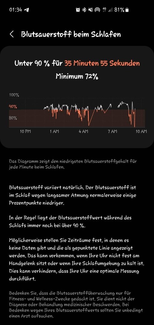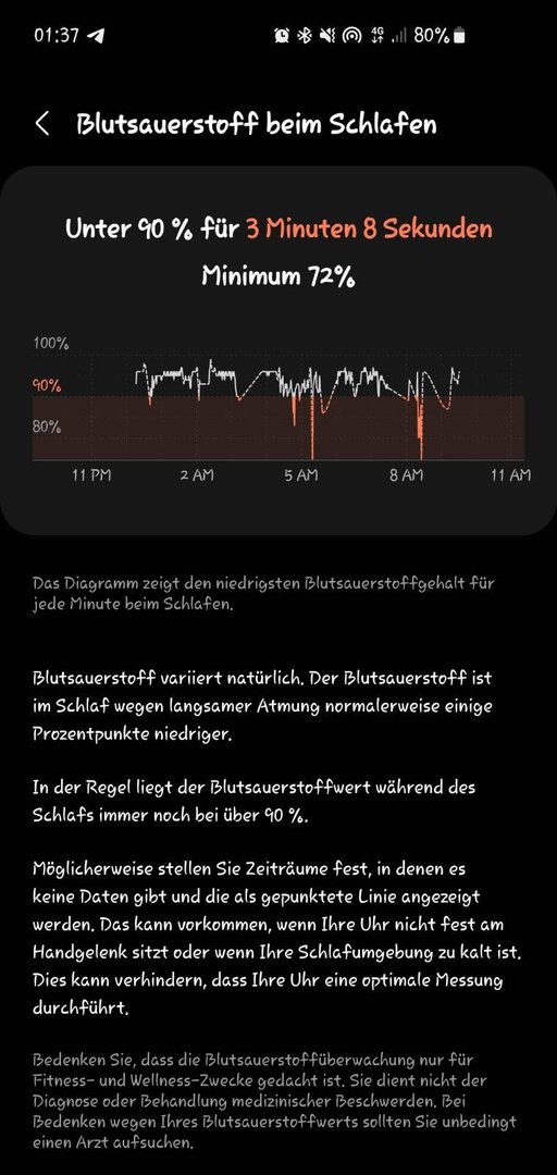 Ich weiß nicht, ob du diese Uhr besitzt aber sobald diese zu locker sitzt kommen teilweise richtig verrückte Werte raus. Als medizinische Indikation würde ich diese nur sehr sehr bedingt empfehlen. Bei SpO2 Messung eignet sich ein Fingersensor mehr. Ich hab mir aus spaß einen Bluetooth SpO2 Ring bestellt und will mal die Werte vergleichen.
