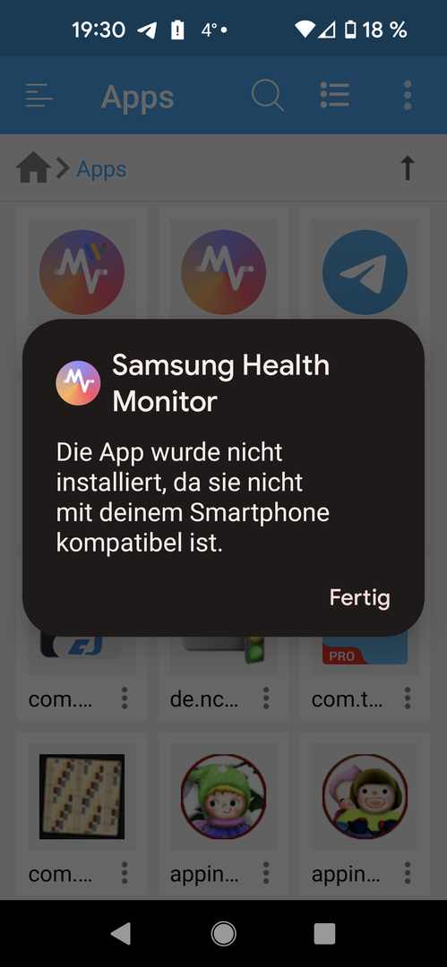 Die eine Apk muss aufs Smartphone, die andere auf die Smartwatch. Geht auch nicht andersrum. Achte auf die Dateinamen. Zeig mal einen Screenshot der Bugjaeger App der Startseite, nachdem Du die Verbindung zur Uhr aufgebaut hast.magnum1795 schrieb:Denke aber das man diese Dateien ja wie im Punkt 30 der Anleitung mit dem Bugjaeger installiert werden soll, oder? Sage schon mal vielen Dank
