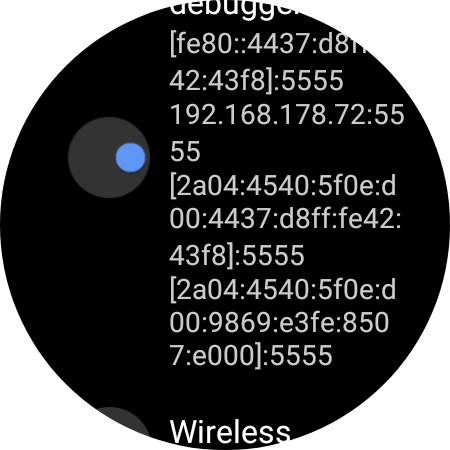 Ich habe die Watch heute bekommen und in den Entwickleroptionen stellt sich das nach dem letzten Update definitv nicht mehr so dar.digi schrieb:Die IP Adresse sollte wie folgt aussehen, Beispiel 192.168.178.72 siehe Screenshot.