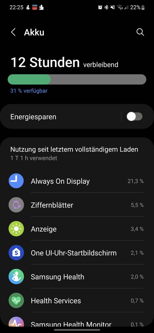 Nach 100% laden ist die Uhr irgendwann bei 70% und die Akku-Verbraucher aufsummiert ergibt 13%.....![]()
