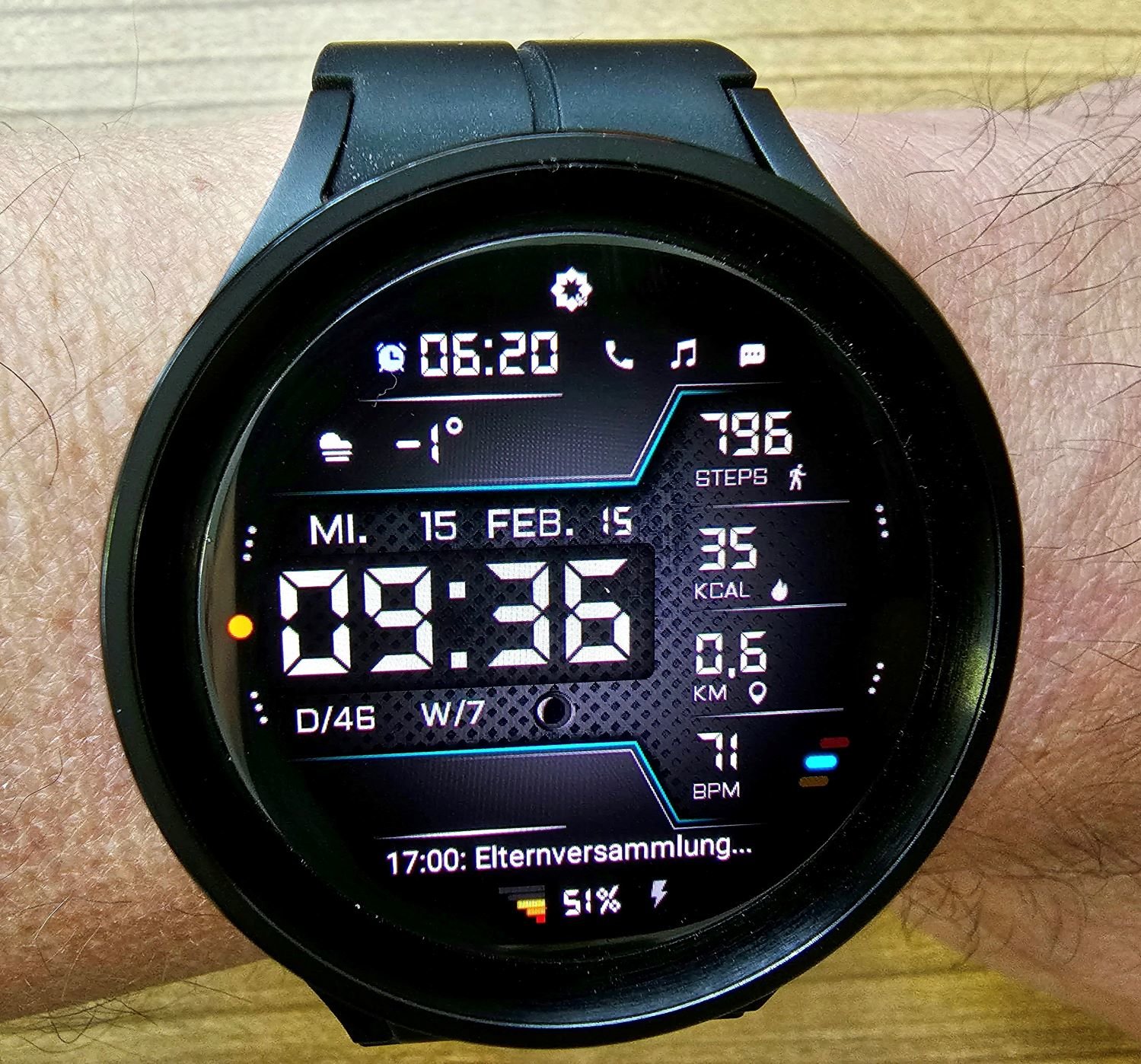 Also für das rechte Ziffernblatt würde ich dir sogar eine Zahlung anweisen.Sieht schick und informativ aus,dazu noch einen roten Stundenzeiger und für mich wäre es das perfekte Watchfaces !![]()