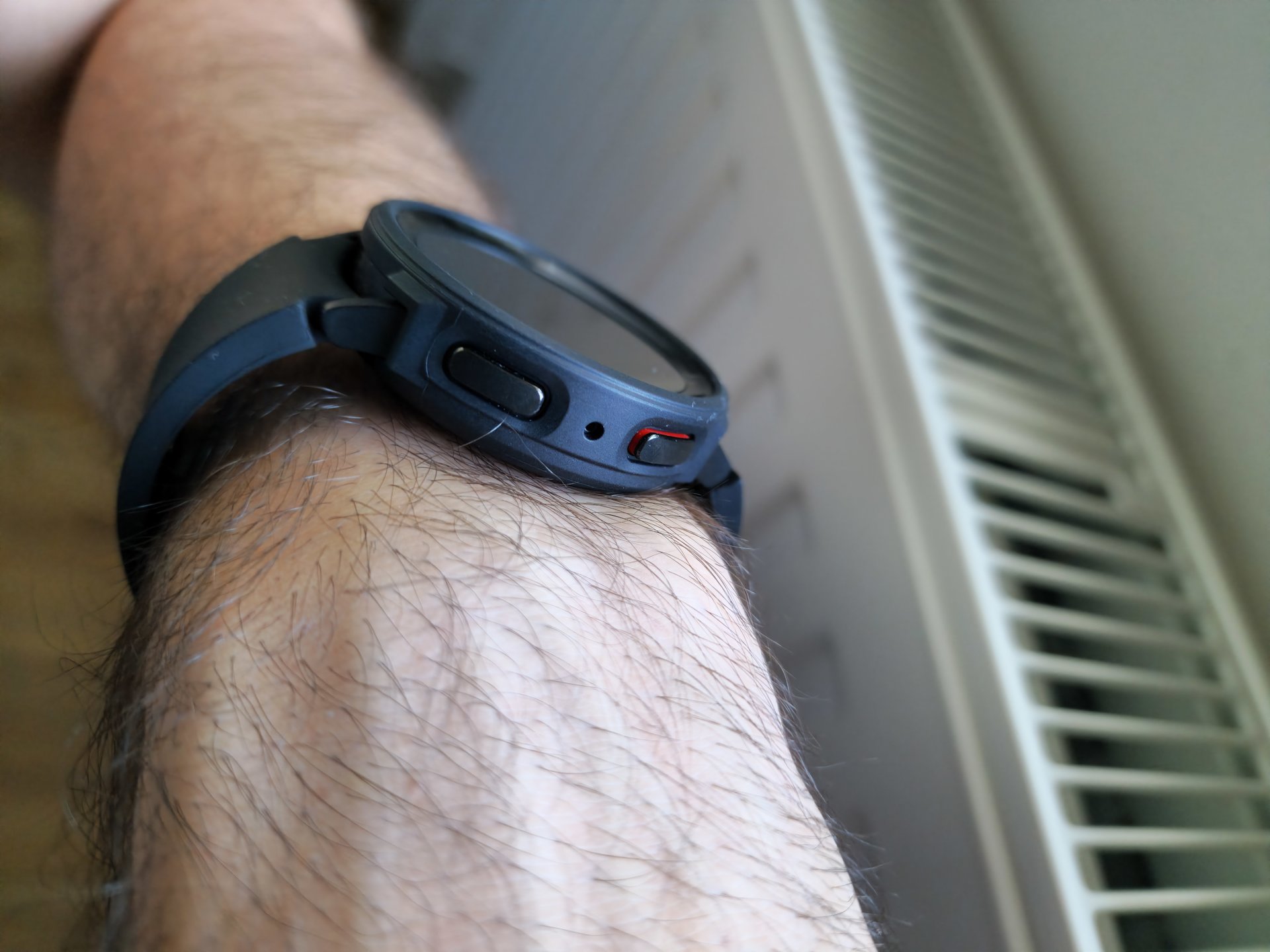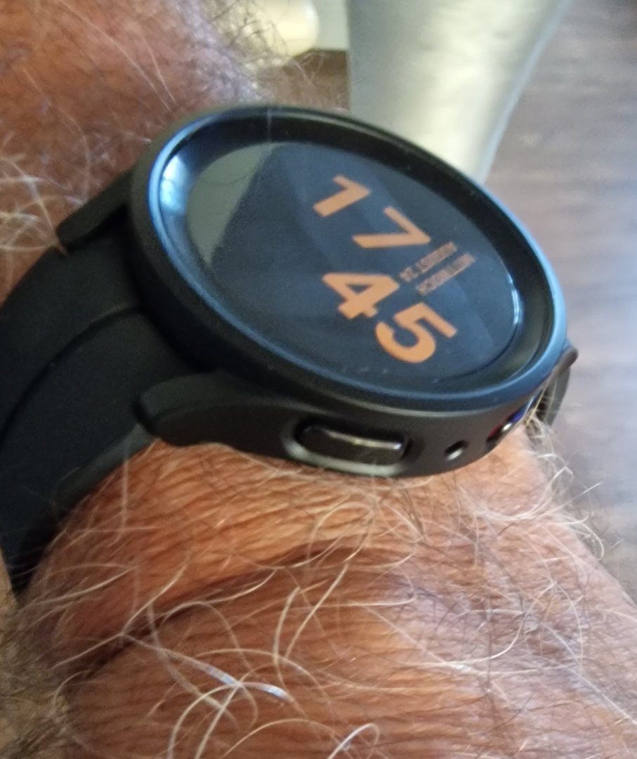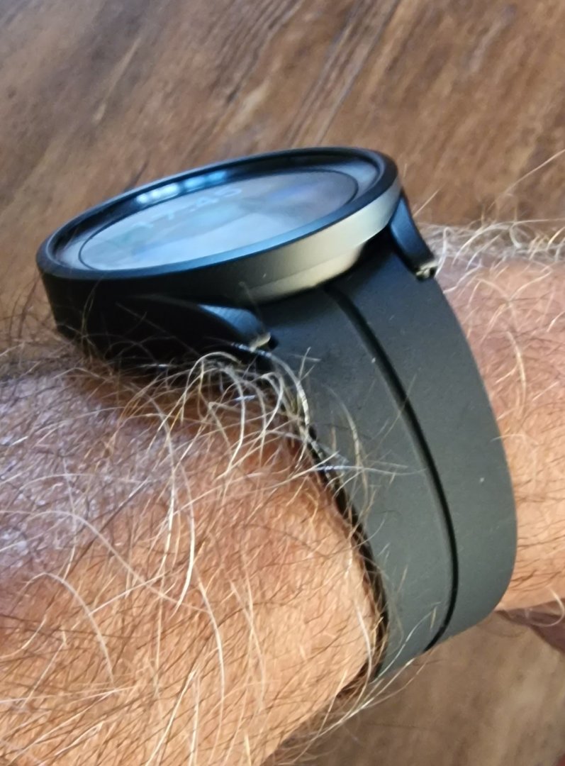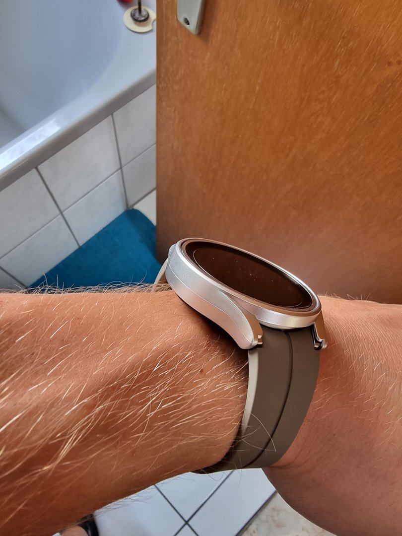 Zum Schutz eine sehr dezentes Gehäuse meines Lieblingsherstellers (Ringke) aus Südkorea angebracht. Das macht die Uhr nur unwesentlich breiter, fällt fast nicht auf, da man meinen könnte, es ist ein Teil der Uhr, so dezent ist es gebaut. Absolut eng anliegend. Und vor allem, es schützt vollumfänglich das Gehäuse vor jedweder Beschädigung.