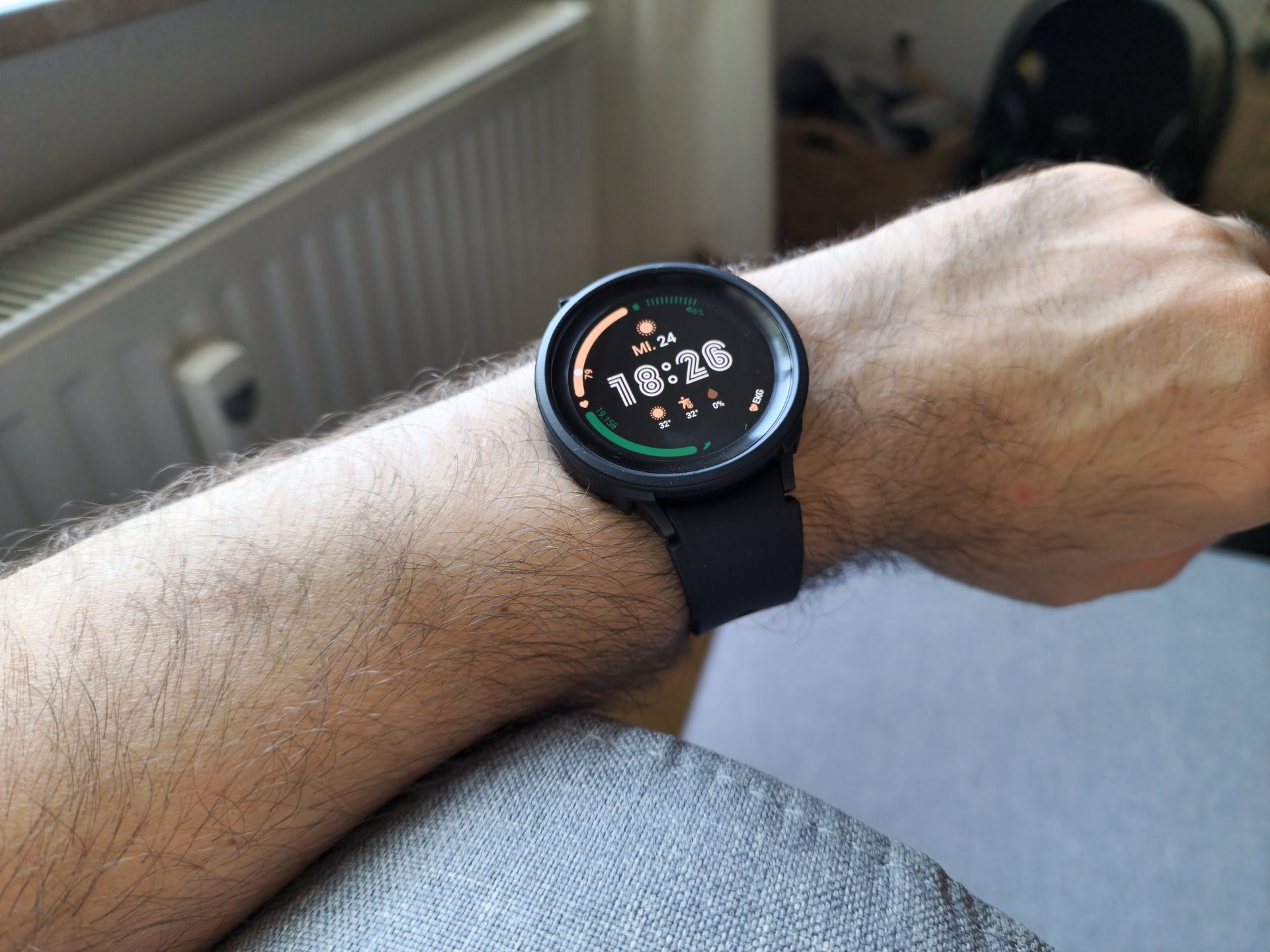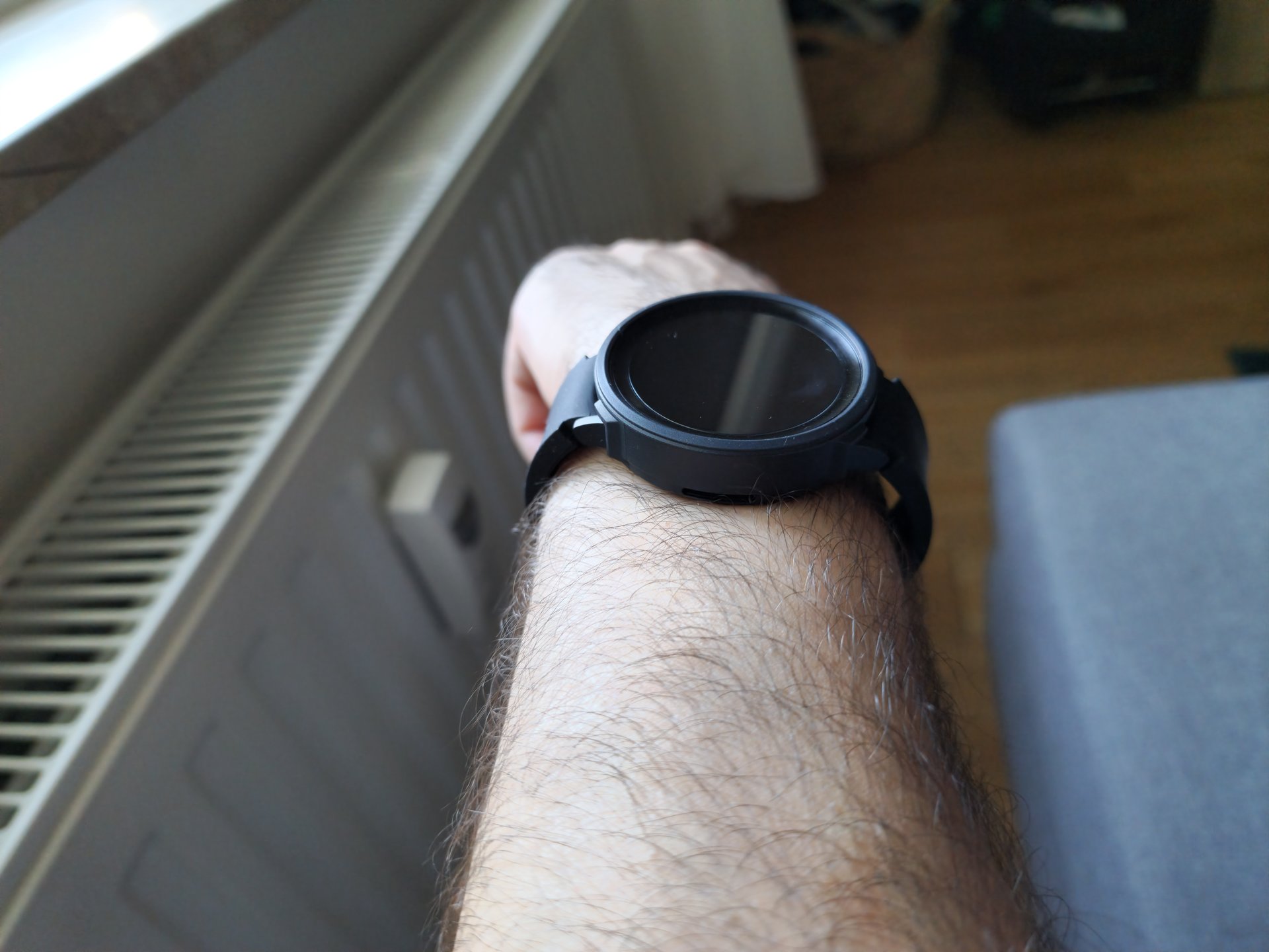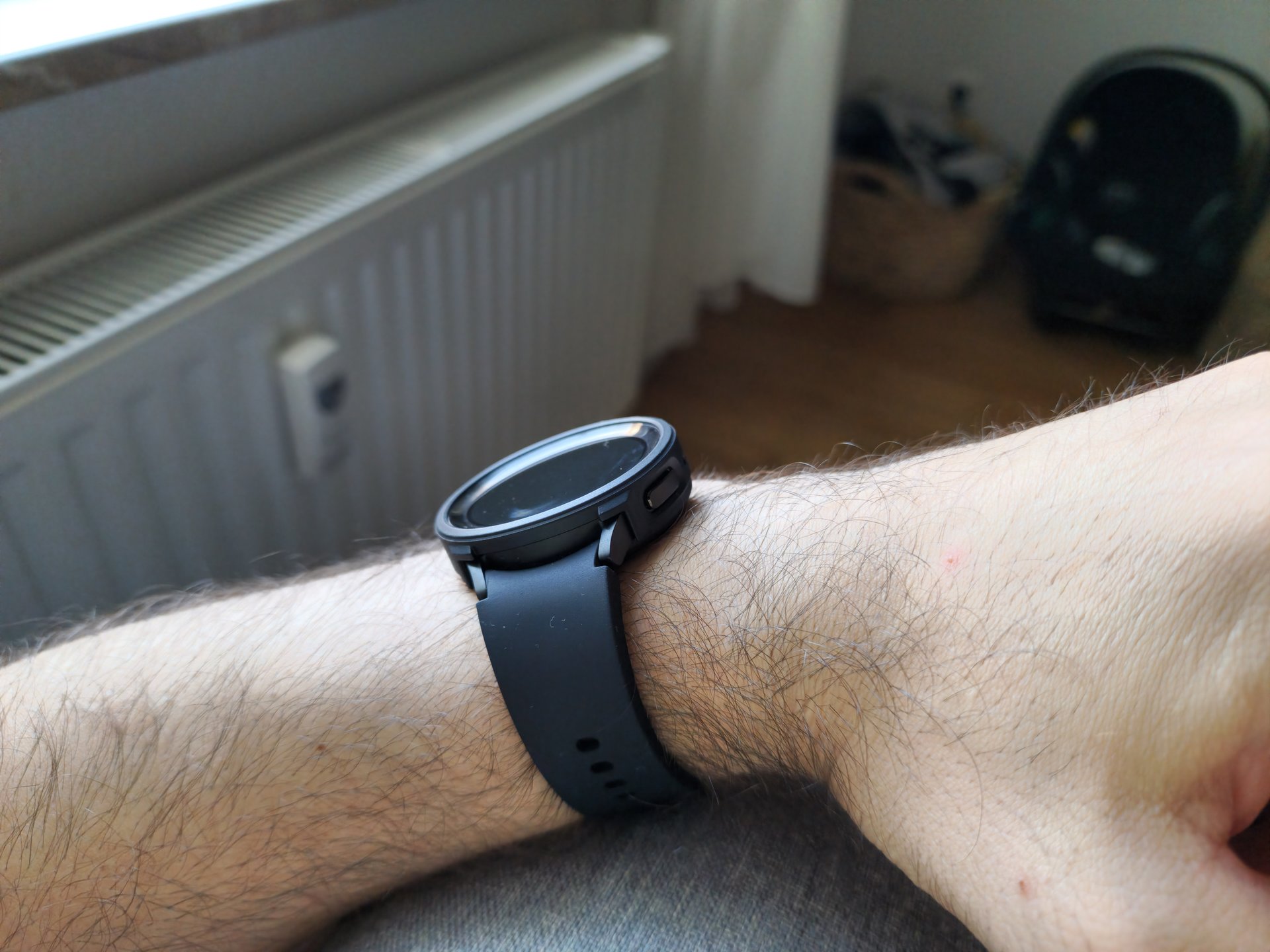 Zum Schutz eine sehr dezentes Gehäuse meines Lieblingsherstellers (Ringke) aus Südkorea angebracht. Das macht die Uhr nur unwesentlich breiter, fällt fast nicht auf, da man meinen könnte, es ist ein Teil der Uhr, so dezent ist es gebaut. Absolut eng anliegend. Und vor allem, es schützt vollumfänglich das Gehäuse vor jedweder Beschädigung.