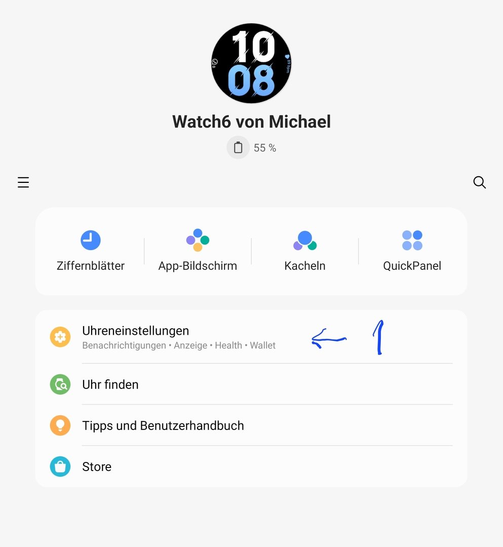 Seit dem Umstieg auf Wear OS mit der Galaxy Watch4 verschwand das "drei Punkte" Menu und man muss nun, um