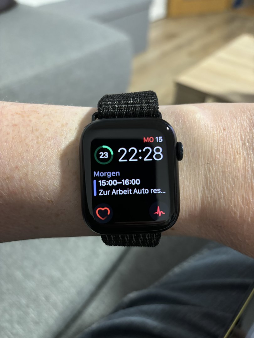 Bei der Apple Watch gibt es ein Stock / original Skin, wo der nächste Termin im Kalender angezeigt wird.