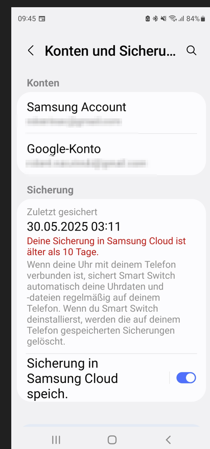 Ich habe die Sicherung in Samsung Cloud deaktiviert. Und wie Ihr geraten habt 1x Smart Switch aufm Handy gestartet.