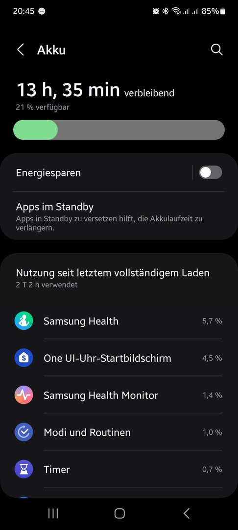 Es ist eine Gear S3 Classic.roboduck schrieb:@Luppo es kann sein, dass Deine 7 Jahre alte Uhr (welche?) den Akku schont und z.B. nur bis 4,1 Volt lädt.
