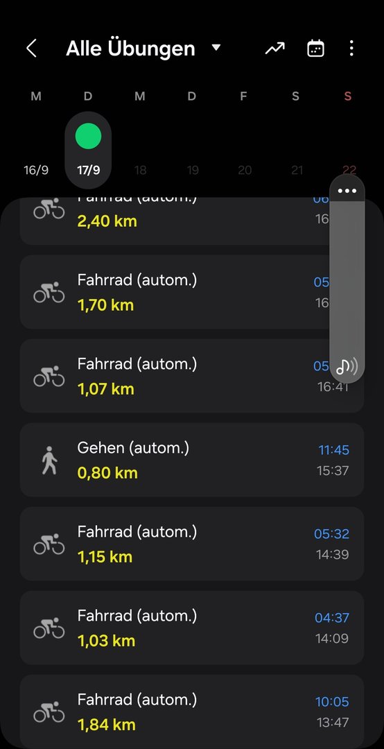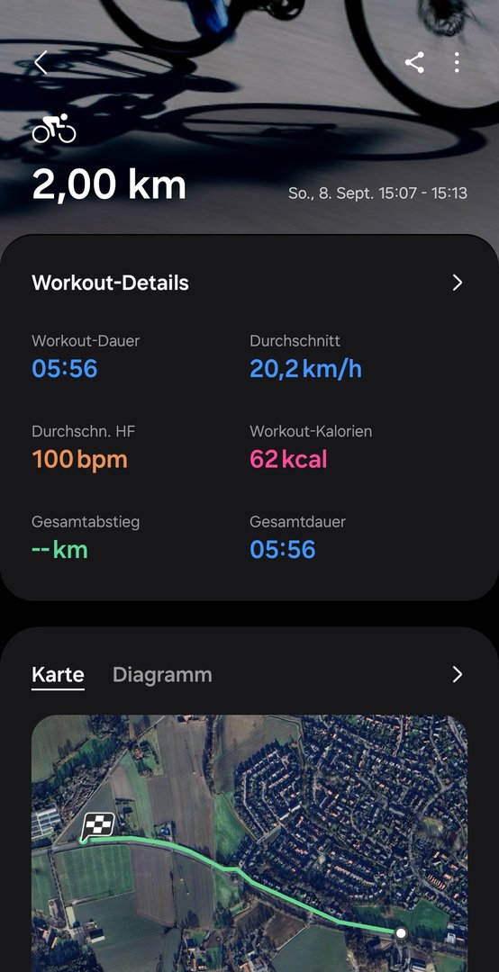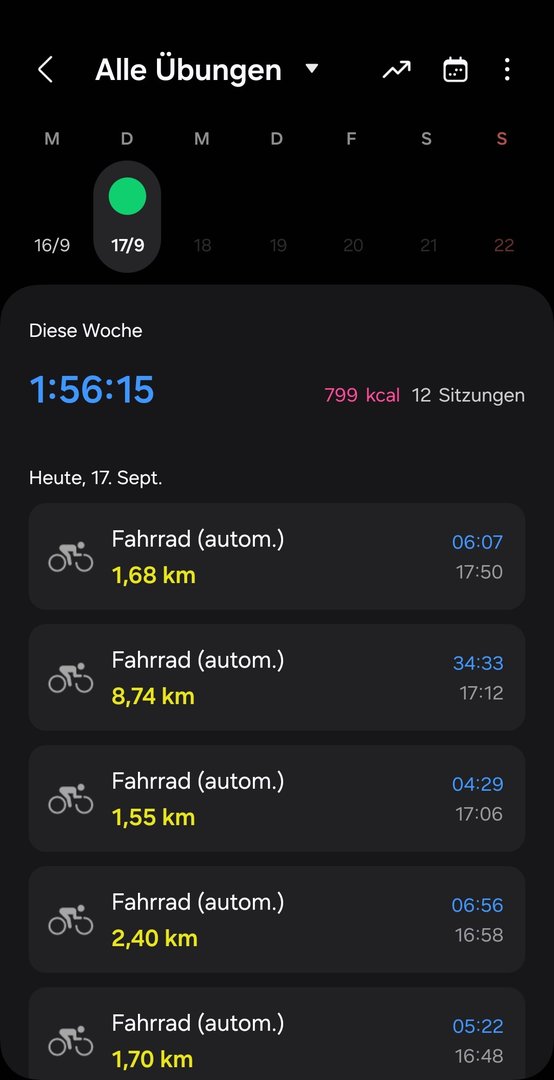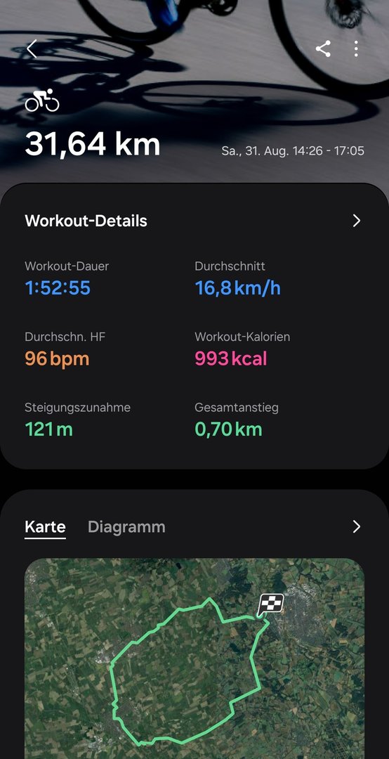 Am 31.08. Radfahren manuell gestartet - da passt alles. Die GPS-Daten passen ziemlich genau.