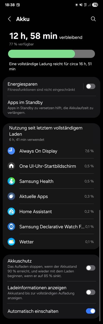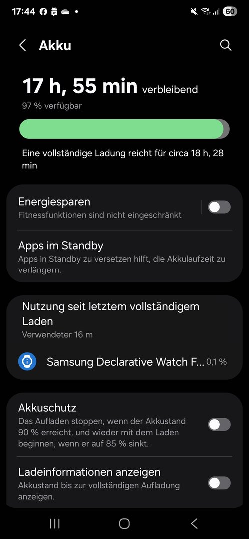 Gestern war tatsächlich der erste Tag an dem ich nicht mehr so viel gespielt hab. Seit Donnerstag hab ich sie und ja, ich hab hundert mal die Watchfaces angepasst usw. Komme ja von der Watch 3 und war neugierig auf Wear OS. Vielleicht hast du ja recht und es pendelt sich in den nächsten Tagen ein. Aber die 3 % Verbrauch kurz nachdem ich sie vom Ladegerät genommen habe, machen mich stutzig. Ich muss das mal weiter beobachten.Adventure-Girl84 schrieb:@Suhani1703 das ist ja kurios bei dir und auch bei einigen anderen. Hab wie du auch die 40er BT und momentan wurde mir errechnet, dass ich 2Tage und 11h mit einer Ladung hinkomme. Es passt sich auch natürlich immer mal wieder neu an, je nachdem wieviel ich dran "rumspiele"