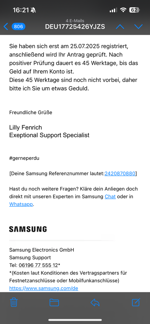 Ja danke war bestimmt eine Fehlinformation. Vielleicht ein Mitarbeiter der sich nicht so Auskennt er sagte er gibt es an seine Chefin weiter. Naja kann man nix machen aber danke. Deshalb gefällt mir die Optik der Watch super und ich werde sie auf alle Fälle behalten.