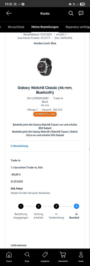 @nilan ich würde mich riesig freuen wenn die Watch 8 Classic so schnell ankommen würde. Es wäre allerdings auch unfair denen gegenüber die schon viel früher bestellt hatten