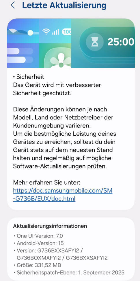 Bei den Modelle S25 und S24 ist jetzt das Gerücht aufgetaucht, dass das Juni Sicherheitsupdate auch an der Akkunutzung dreht und zwar im Positiven: eine Akkuladung hält länger.Build-Nummer : G736BXXSAFYF1