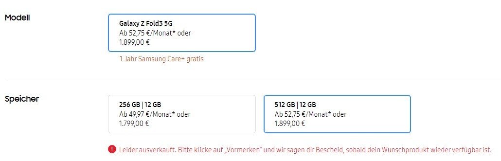 Wenigstens eine "ehrliche" Ansage jetzt.marbo2k9 schrieb:Also wenn man jetzt auf Samsung.de eine 512 GB Version bestellen möchte, dann wird direkt folgendes eingeblendet und eine Bestellung ist nicht mehr möglich.