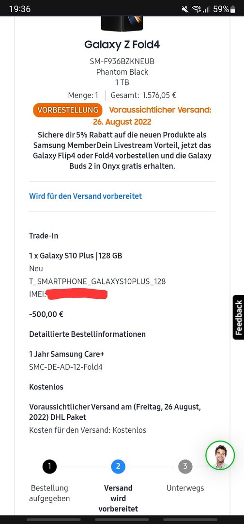 . Ok dann klappt das bei dir nicht. Aber wenn du schon den Status hast wie der Reddit user, dann hast du das Gerät eigentlich innerhalb von 2 Tagen