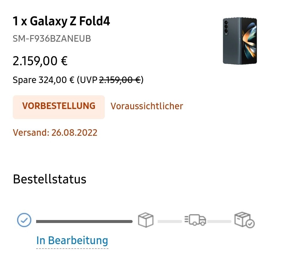 Bei mir ist der Status unverändert "in Bearbeitung " und Versand steht voraussichtlich 26.08. (obwohl in der Bestellmaske im Shop zwischenzeitlich der 19.08. drin stand).