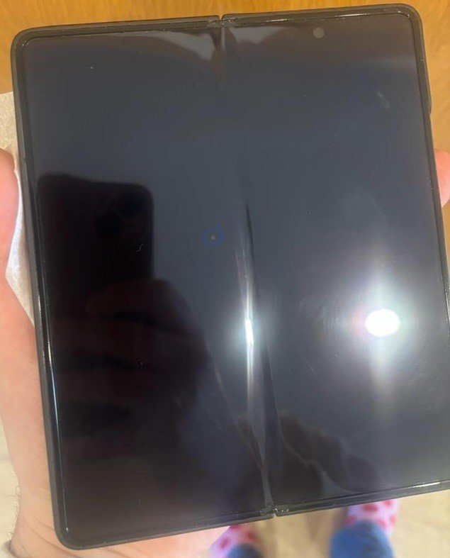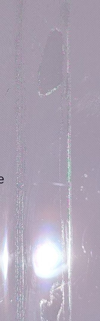Ich dachte erst, die Folie löst sich in der Mitte, weil sie Blasen warf. Das entwickelte sich von einem Tag auf den anderen. Und vorhin, als ich aufklappte, hatte ich dann die Risse. Ich glaube nicht, dass die nur von der Folie kommen...