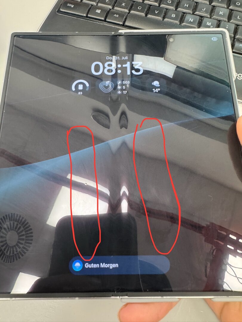 Hallo mir ist heute aufgefallen beim aufklappen und innen schauen das ich lauter Punkte in dem roten Bereich habe. Weiß nicht ob man hier auch Videos online stellen kann. Aber ich probiere es mal. Die Punkte sind von oben bis unten in dem roten Bereich. Habt ihr das auch? Ist euch das auch aufgefallen? An wenn muss ich mich denn hier dann wenden Samsung Chat? Das stresst mich jetzt schon etwas mit diesen Punkten.