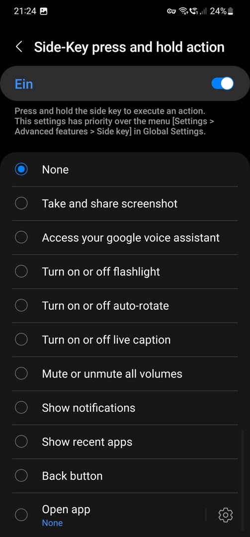 Mit RegiStar können Sie die Aktion für das Drücken und Halten der Power-Taste (an der Seite) festlegen. Viele Nutzer von Galaxy-Smartphones haben sich von Samsung gewünscht, dass sie den Google Assistant mit dem Gedrückthalten der Einschalttaste öffnen können, und das ist nun mit der RegiStar-App möglich."