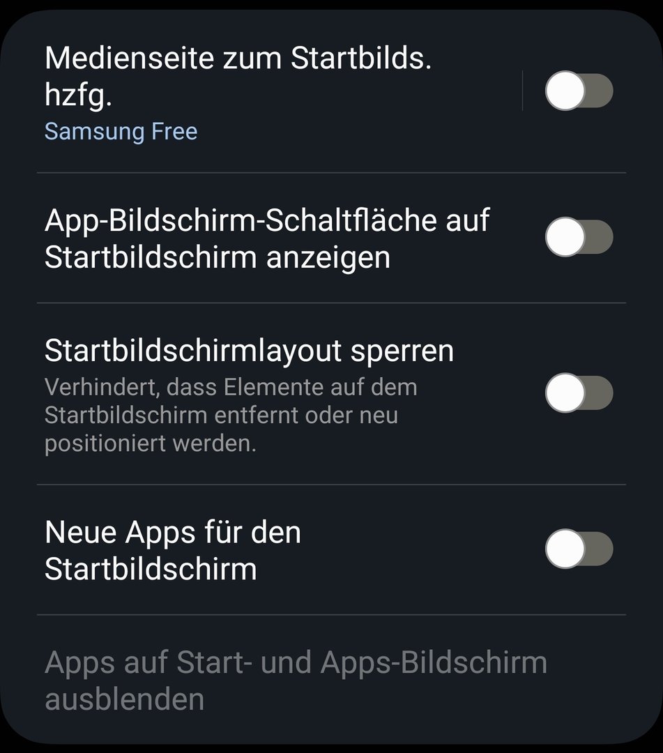 (apps auf start und app Bildschirm ausblenden)