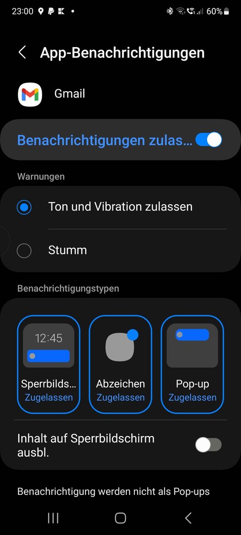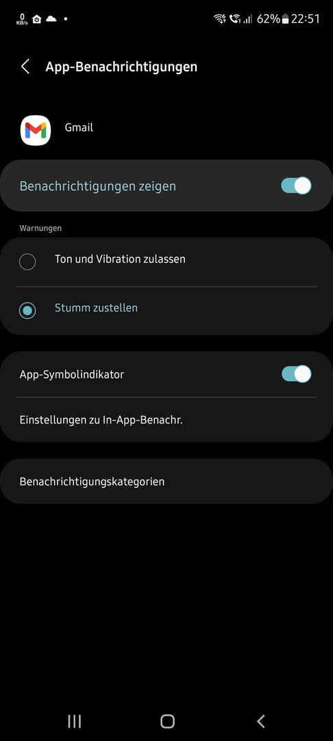 Bei der Gmail App möchte ich nur, dass der Zähler am Icon noch zählt sonst keine Benachrichtigung.