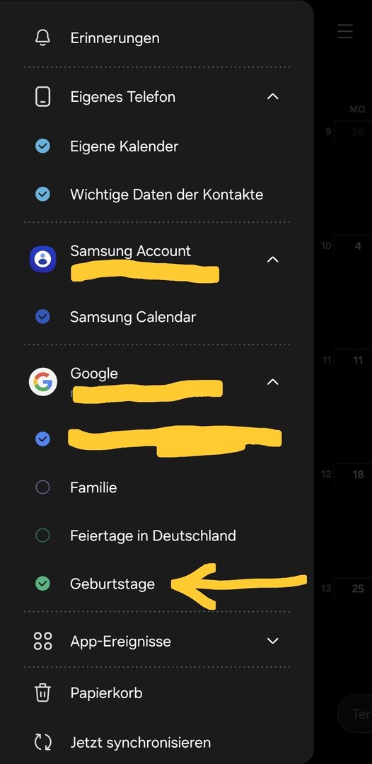 Mir ist vor kurzem aufgefallen, dass die Geburtstage meiner im Galaxy gespeicherten Kontakte, nicht mehr im Samsung Kalender angezeigt werden.