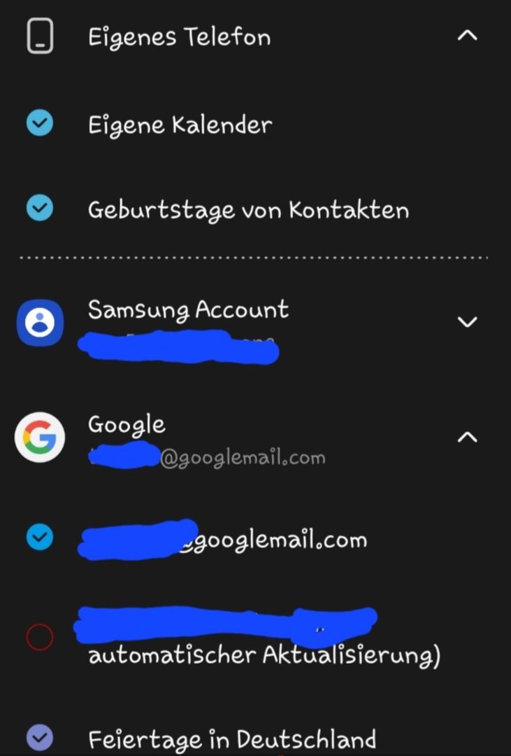 Ist beim S21/S22 Ultra, beim Z Fold 2 und beim S22 so. Vor kurzem wurden die noch im Samsung Kalender angezeigt. Ich habe nichts geändert und laut Einstellungen müssten die eigentlich angezeigt werden.