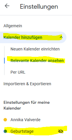 Weiß jemand wie ich den Punkt wieder herstellen kann / wie ich die Geburtstage meiner Kontakte wieder im Kalender angezeigt kriege?
