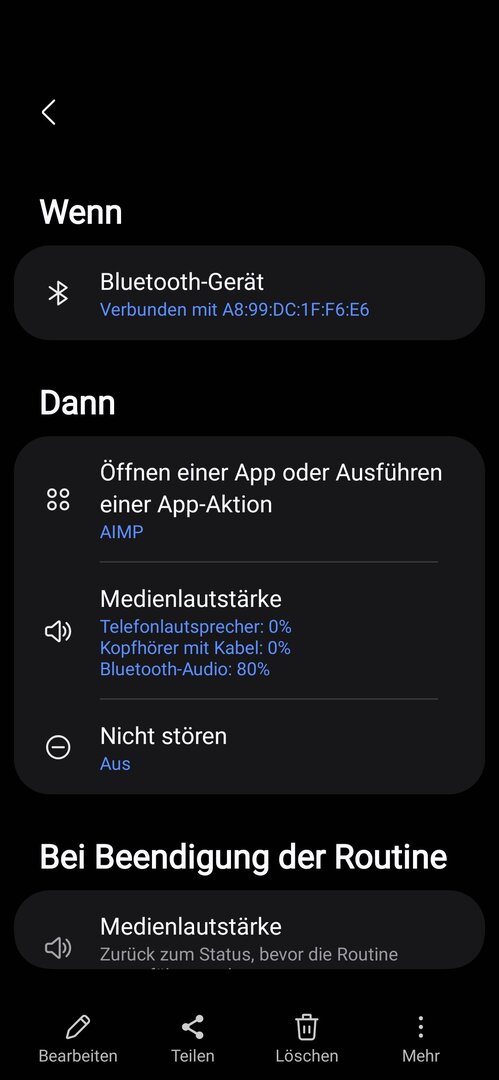 Kurz zur Erklärung. Mein Handy verbindet sich mit meiner Yamaha mit eine App "my Ride" aber leider nicht automatisch sondern erst wenn die App läuft. Also war mein Plan sobald eine Verbindung mit meinem Haedset im Helm zustande kommt die App auf meinem Handy starten soll. Funktioniert aber die Verbindung kommt erst zustande wenn das Handy Display an ist und die App im Vordergrund läuft. Die App startet auch, wenn ich das Display anmache läuft sie bereits. Also die Routine funktioniert soweit.
