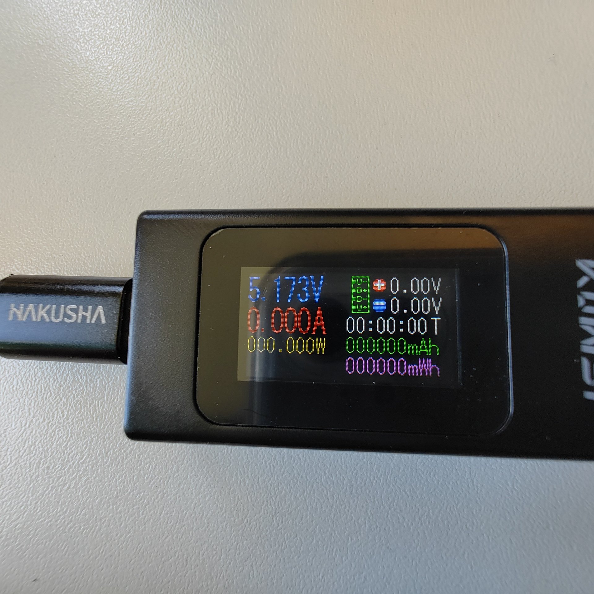 Jetzt hab ich mir auch mal einen USB-Tester zugelegt (den hier: Amazon ). Allein, ich weiß nicht ganz, auf welche Werte ich achten muss, um zu bestätigen oder zu widerlegen, dass das Ladegerät und/oder das Kabel was taugt. Das Gerät hat zwei Anzeigevarianten, ich hab mal Fotos gemacht.