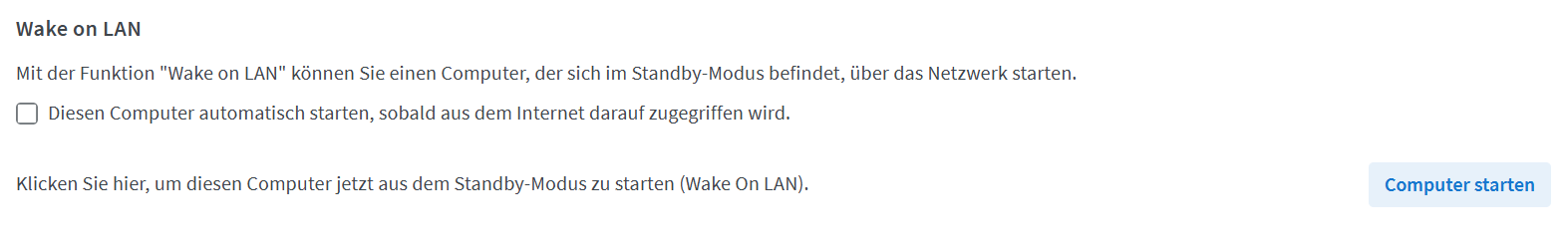 Ich würde gerne remote auf meinen PC zugreifen und der Zugriff funktioniert auch. Was aber bislang nicht funktioniert ist das Wake-On-LAN.