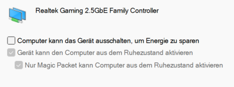 - im Gerätemanager die Netzwerkkarte eingerichtet (Energie --> Einschalten erlauben)