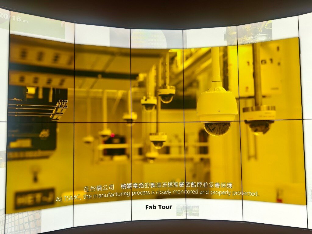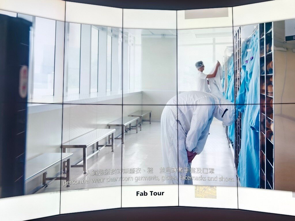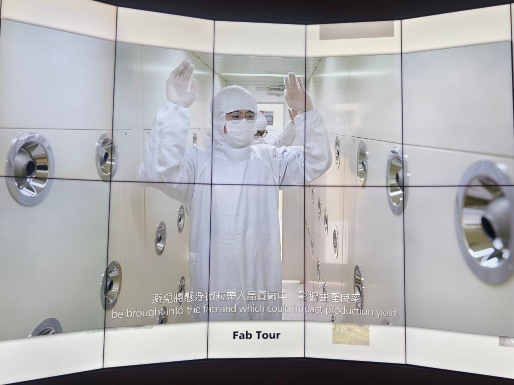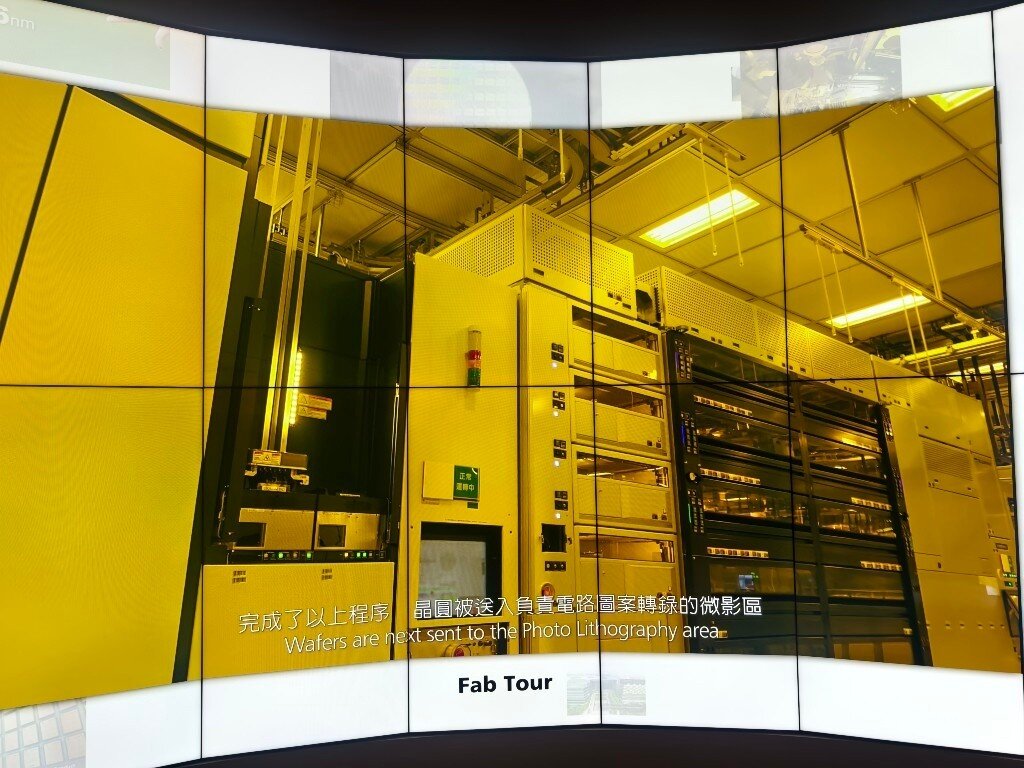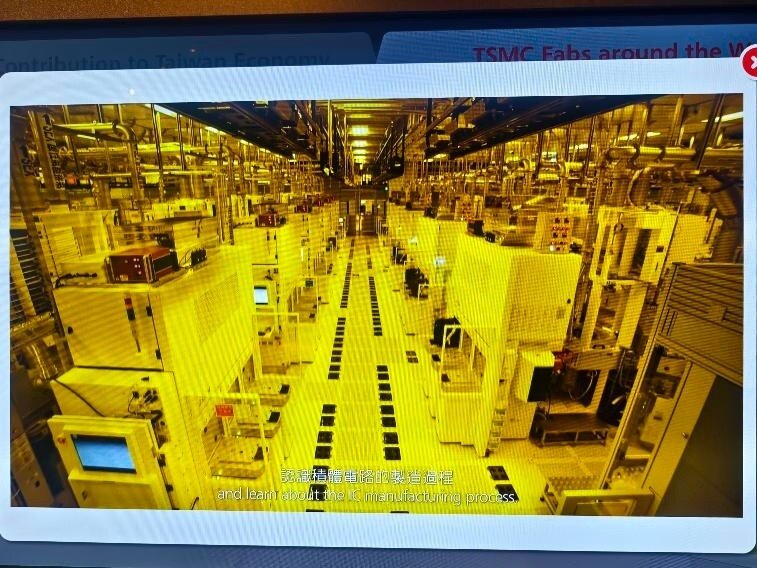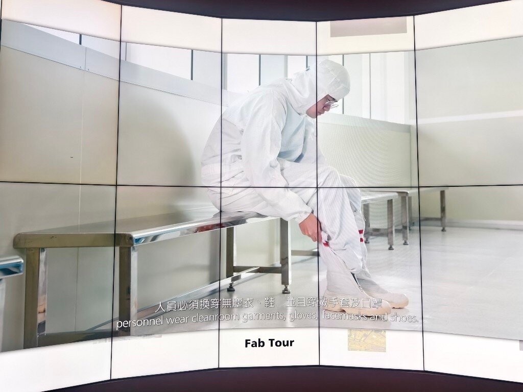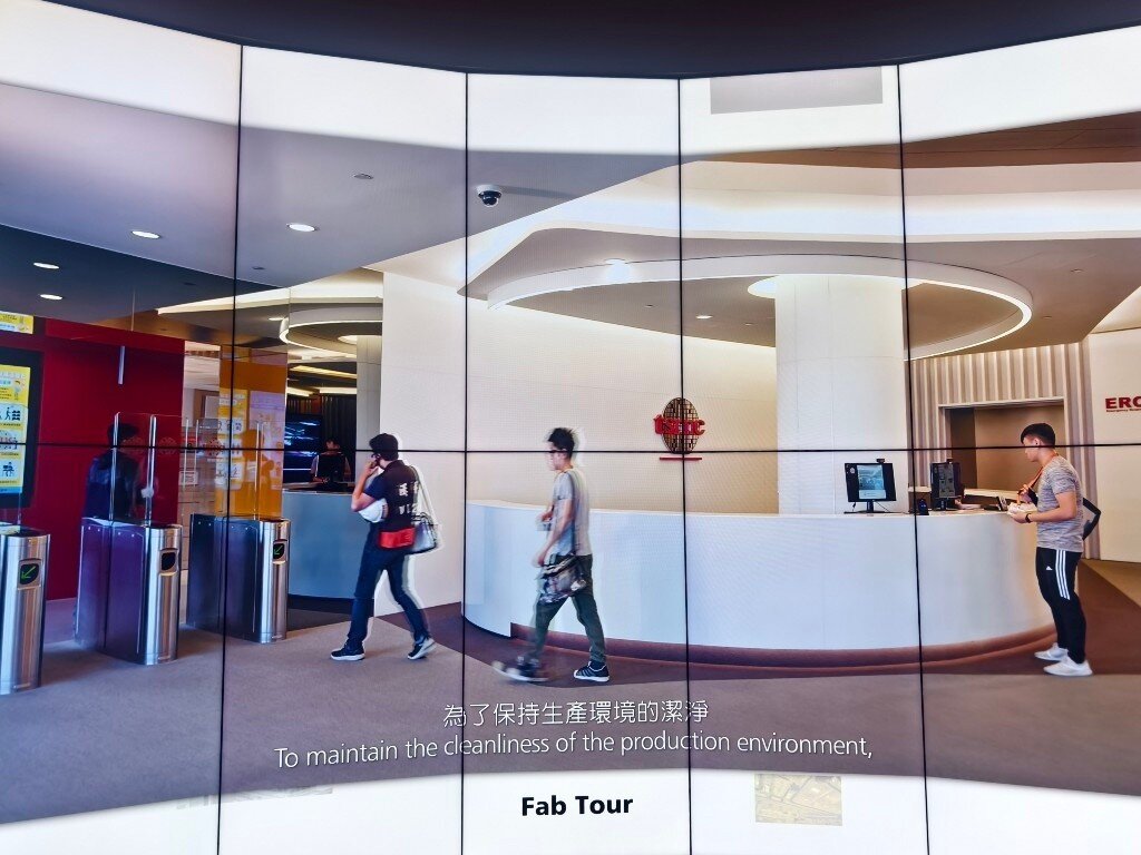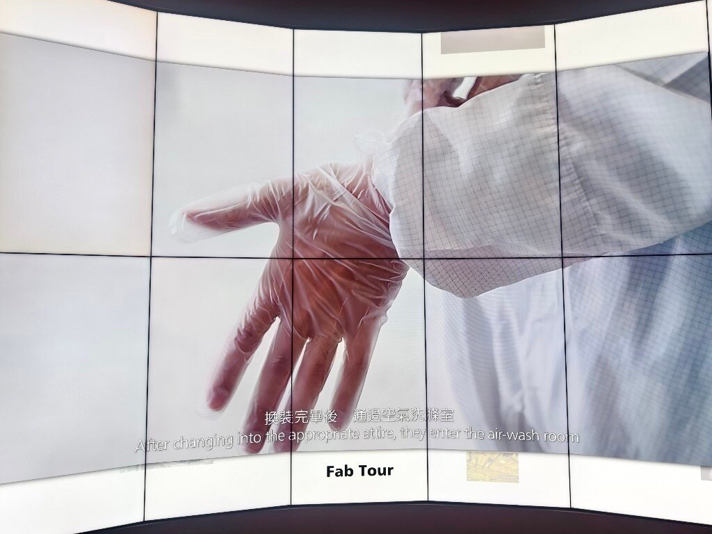 Taiwan ist das Herz der globalen Halbleiterindustrie. 80% aller Halbleiter werden in Taiwan hergestellt. 60% allein bei TSMC. Neben TSMC, die in der öffentlichen Berichterstattung sehr präsent sind, gibt es noch weit mehr große Hersteller, Fabs, Tester und Assembler in Taiwan und in anderen Ländern. Während es verständlicherweise streng verboten ist, in den sicheren Produktionsbereichen dieser Firmen Fotos zu machen, besteht allerdings die Möglichkeit für Fotos im TSMC Museum of Innovation in Hsinchu in Taiwan. Die Fotos, die man dort von den verschiedenen Lehrvideos machen darf, geben einen realistischen Einblick in den komplexesten industriellen Produktionsprozess der Welt. Der Eindruck in die Fortschrittlichkeit dieser Technologie und die damit verbundenen Anforderungen an die Sicherheit sind nicht nur auf TSMC beschränkt, sondern betreffen sämtliche Waferfabs, Tester und Assembler aller Hersteller in Taiwan und anderswo. Dieses ist eine Projektionsfläche im TSMC Museum of Innovation, von der die meisten der folgenden Fotos stammen: